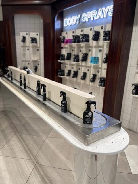 Le personnel hyper sympa, a l’air heureux d’y travailler, évidemment je repars avec quelques produits, dont un nettoyant gel douche sous forme de gélatine, qui passe en solide quand on prend l’avion.